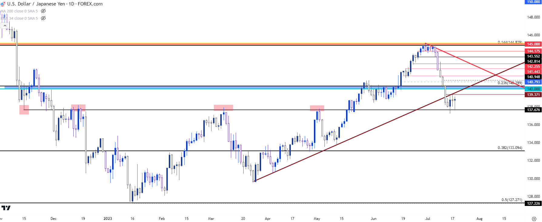 上周,当谈到低点可能在哪里出现时,我分析了美元/日元的一个关键支撑位,此后该点位开始发挥作用,帮助支撑了价格。这就是11月的支撑位137.68,然后在今年上半年多次作为阻力位出现。